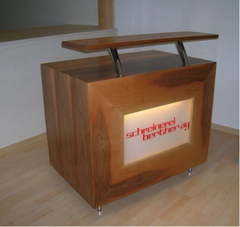 Barmöbel in Nussbaum furniert und lackiert.