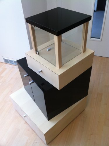 Korpuspyramide in Ahorn furniert und MDF schwarz in Hochglanz.