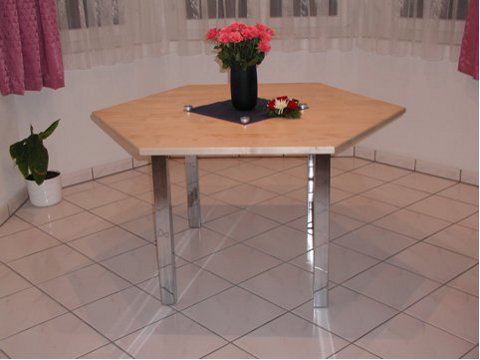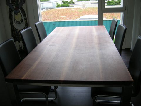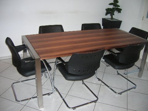 Nussbaumtisch geölt mit Chromstahlgestell