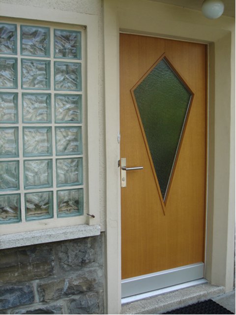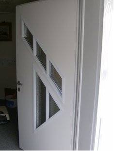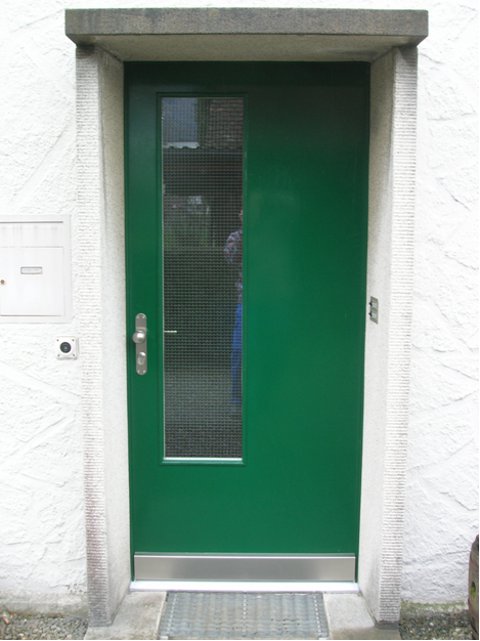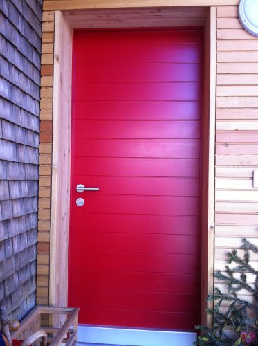 Haustüre mit "optischen" Breitfalzriemen, gespritzt.